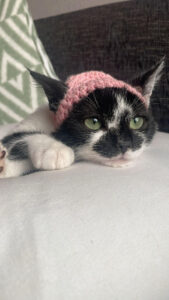 Heb nog een klein wondje op mijn hoofd en daarom draag ik soms een mutsje.
