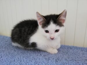 katertje, waarbij hij in zijn bijna witte gezichtje een piepklein zwart vlekje (lijkt een snorretje)