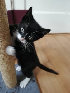 Hallo, dit is Plato en hij wil heel graag geadopteerd worden. Hij is een zwart/wit cypers