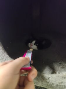 Heb jij ervaring met verlegen katten en wil jij dit lieve kitten een goed huis geven?