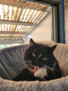 Hij is samen met negen andere katten naar ons gebracht omdat de vorige eigenaar helaas niet meer voor hen kon zorgen.