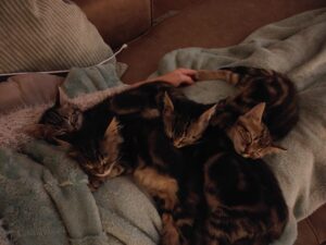 Ze zijn gek op spelen en kunnen flink rennen maar zijn ook ontzettend aanhankelijk en knuffelen heel graag met je. Ze zijn een baby gewend dus dit zijn de perfecte kittens voor een druk huis met jonge kinderen!