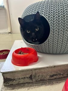 Timon bekijkt de wereld bij ons liever vanaf zijn vertrouwde plekje en waardeert een aai op zijn tijd ook.