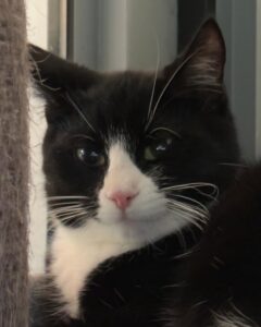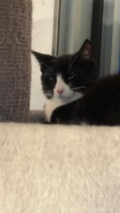 We merken wel dat zij zich optrekt aan de andere katten in de groep.