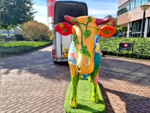Afgelopen week nam Toon Kessen, marketingmanager bij Koninklijke ERU, een bijzondere en kleurrijke dame officieel in ontvangst, uit handen van Gerrit van Groningen van galerie Kunst bij Gerrit. De kunstkoe,